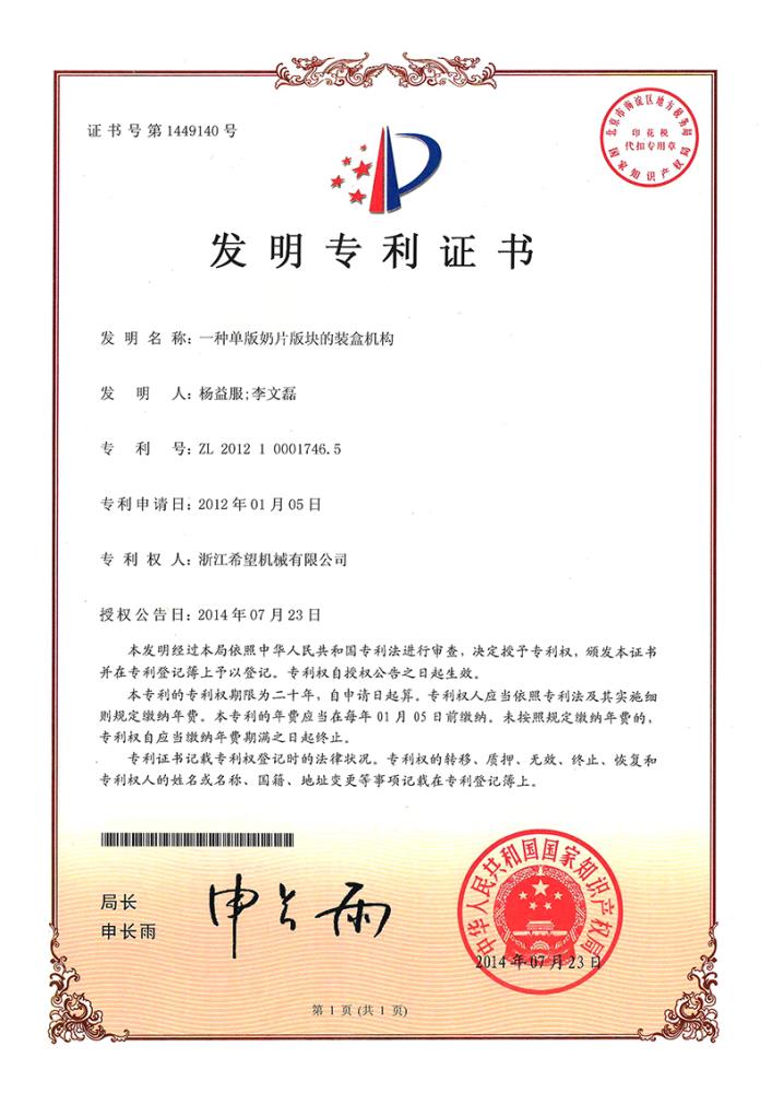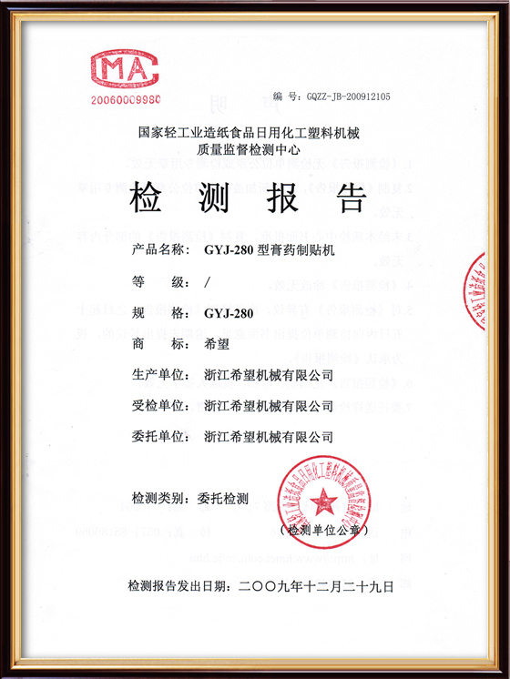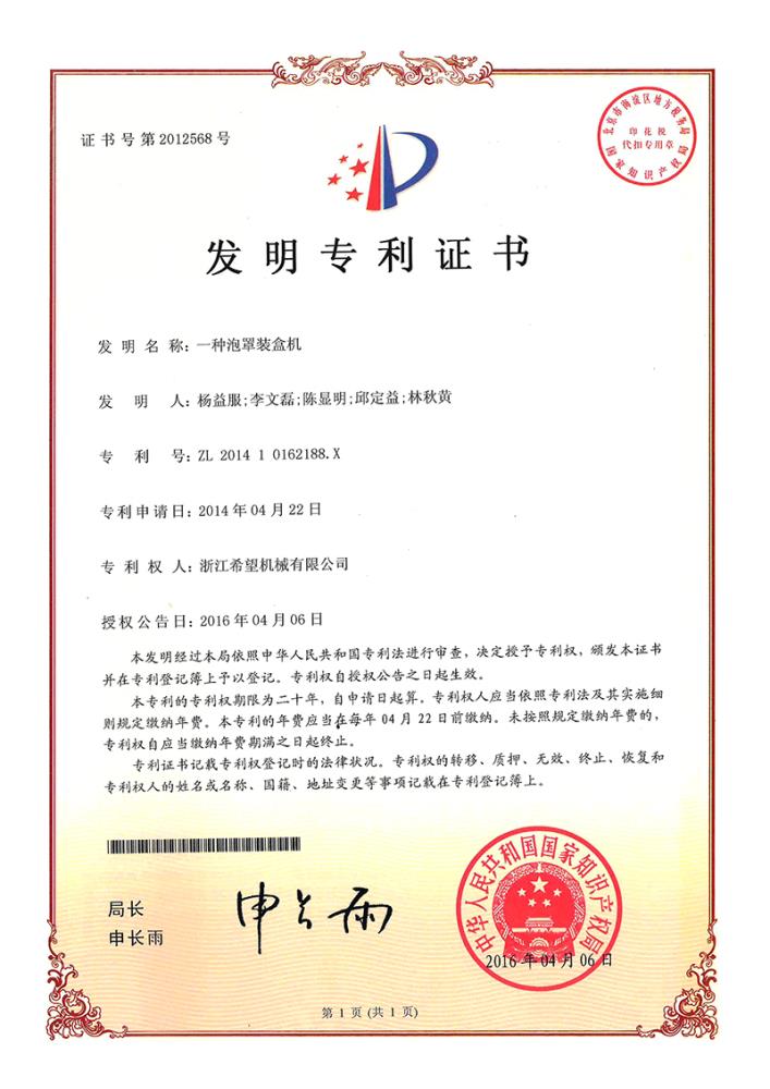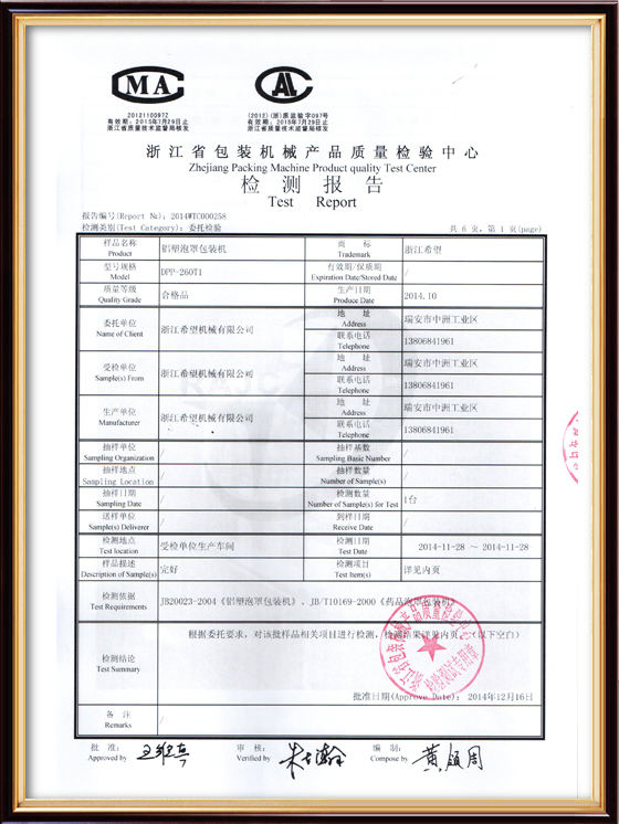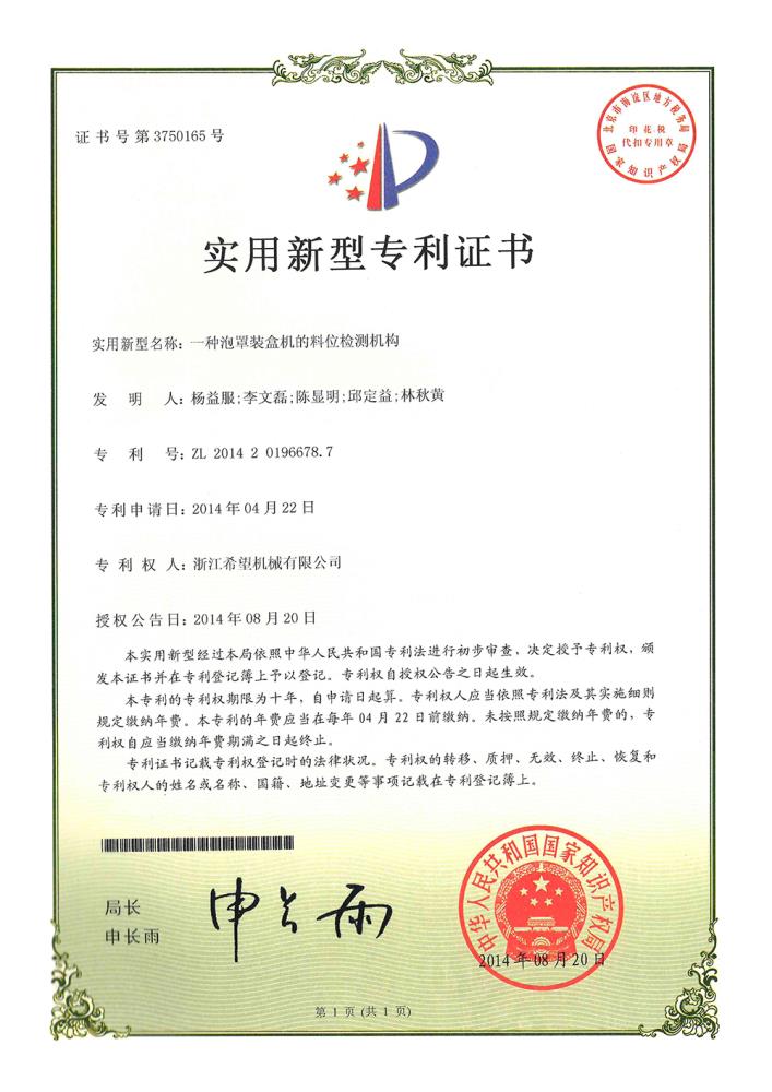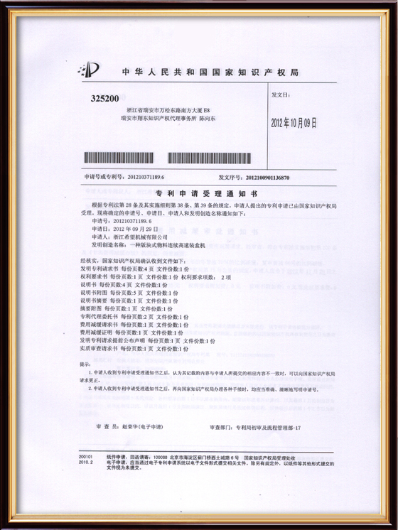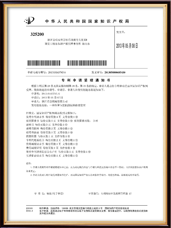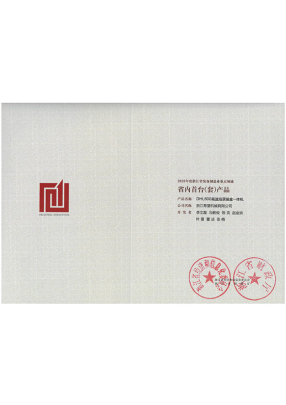 2016年“DHL600高速泡罩裝盒一體機(jī)”獲浙江省首臺(tái)套產(chǎn)品榮譽(yù)稱號(hào)。