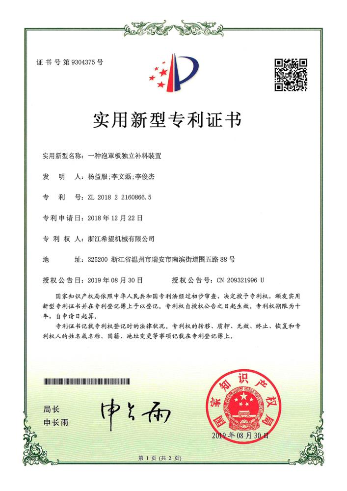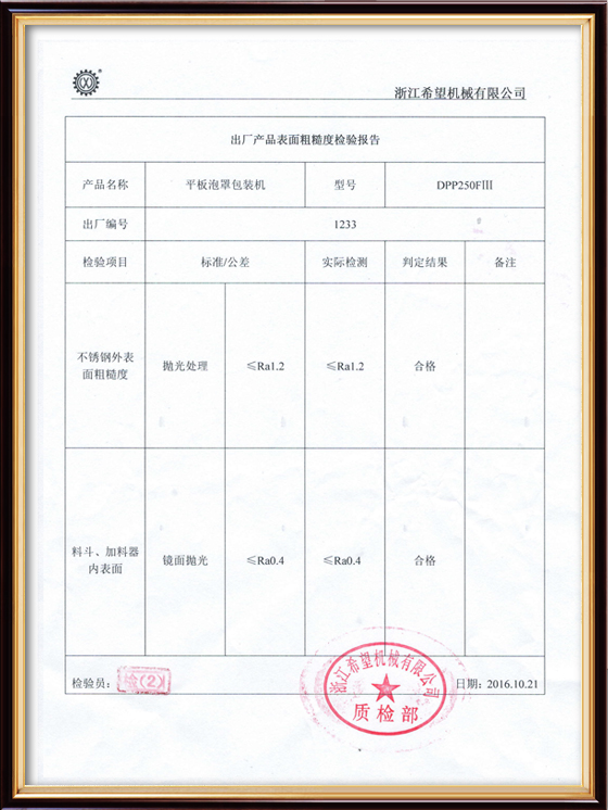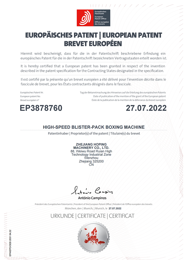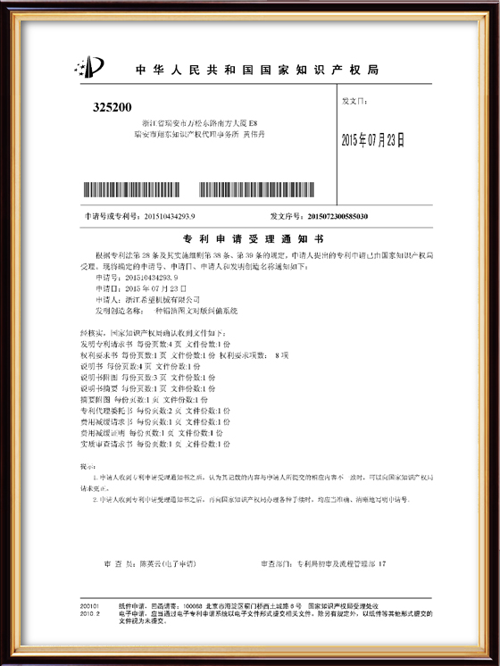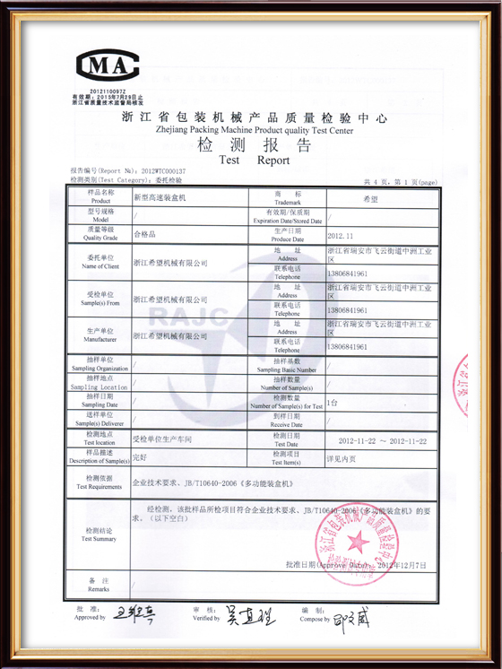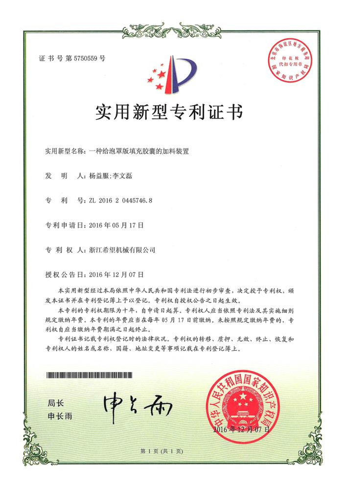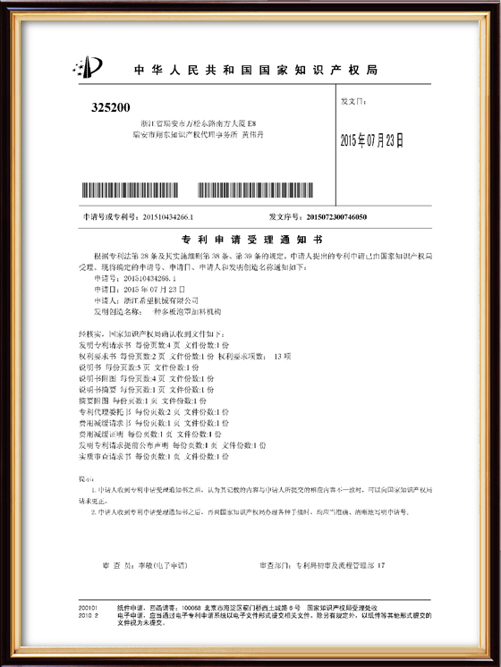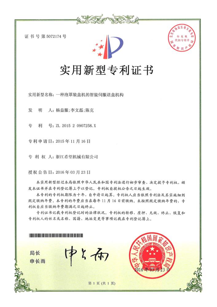 2016年“DHL600高速泡罩裝盒一體機(jī)”獲浙江省首臺(tái)套產(chǎn)品榮譽(yù)稱號(hào)。