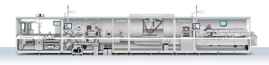 DHL1000/5H Ultra Fast 智能全伺服高速泡罩裝盒一體機,超高速1000板/min高效包裝體驗,全新升級的智能集成系統(tǒng)深度融合智能算法與技術(shù)創(chuàng)新,為藥品包裝提供高效、穩(wěn)定、低碳、安全的全新解決方案。2/3/4列通用格柵輸送系統(tǒng)(無需調(diào)節(jié)),支持多規(guī)格產(chǎn)品快速切換;模具定位及快速更換技術(shù)(配方復(fù)位記憶功能),更是將換模時間縮短至1小時內(nèi),完美適配小批量定制化需求;搭載成型緩沖恒力系統(tǒng),確保生產(chǎn)全程恒力輸出,保障泡罩成型穩(wěn)定;三段式預(yù)熱系統(tǒng),階梯式遞減溫度預(yù)熱,既保障包材受熱均勻,也實現(xiàn)了能耗下降約10%;水冷恒溫系統(tǒng)采用雙循環(huán)流量獨立控制技術(shù),即使設(shè)備長時間高負(fù)荷運轉(zhuǎn),也能保持絕佳穩(wěn)定性;分區(qū)密閉系統(tǒng)通過獨特的壓差隔離設(shè)計,有效避免裸露藥品包裝安全風(fēng)險,確保每一板產(chǎn)品都符合高品質(zhì)標(biāo)準(zhǔn);可支持獨立選配壓痕工位、光標(biāo)對版系統(tǒng)、熱量收集系統(tǒng)等可靈活擴(kuò)展功能,輕松應(yīng)對復(fù)雜工藝場景。希望DHL1000/5H Ultra Fast成為您智能包裝的核心引擎!
